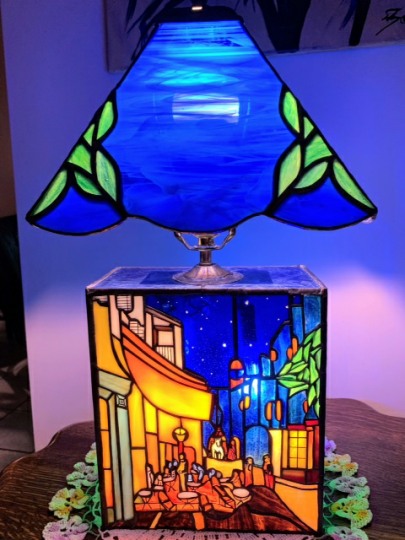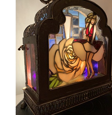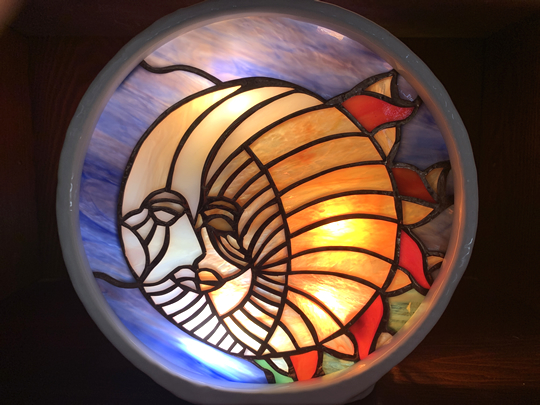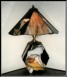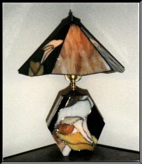 I began designing and building lamp bases in 1995, along with a complimentary lamp shade. Previous to this lamp design, I only made the lamp shades to go on pre-cast brass lamp bases. I found with this design structure, I could implement more detail into my lamp projects. With this design, I can also illuminate the base and the shade together or separately, allowing a little more flexibility in the light output.